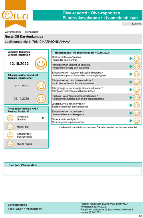 Keittiö sulkeutuu tuntia ennen aseman sulkeutumista.